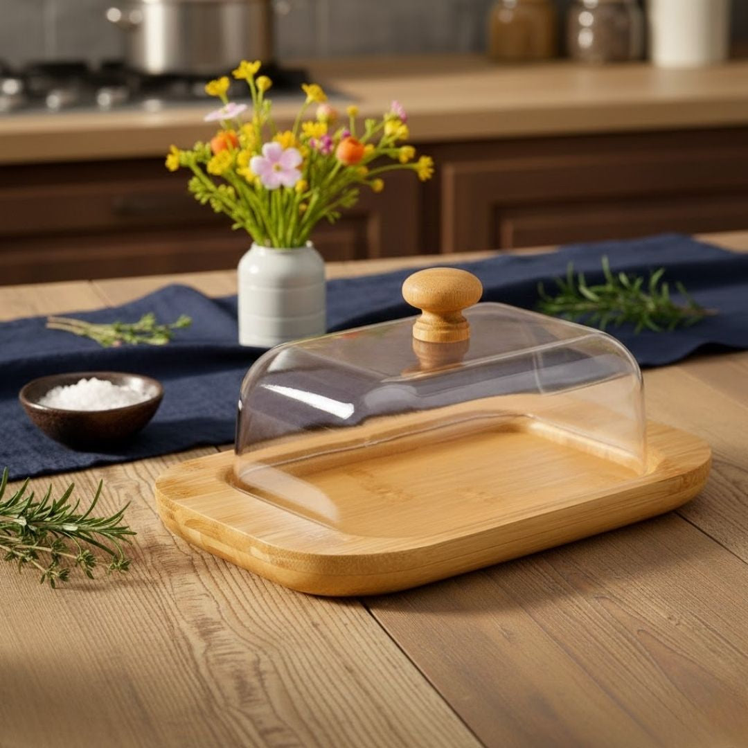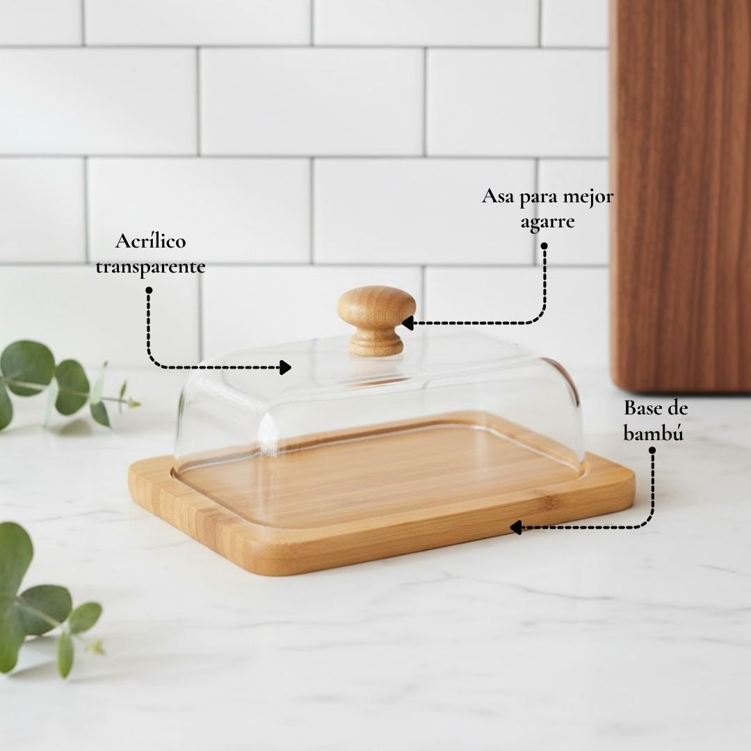 🧈 Mantequillera de Bambú con Tapa Transparente ✨