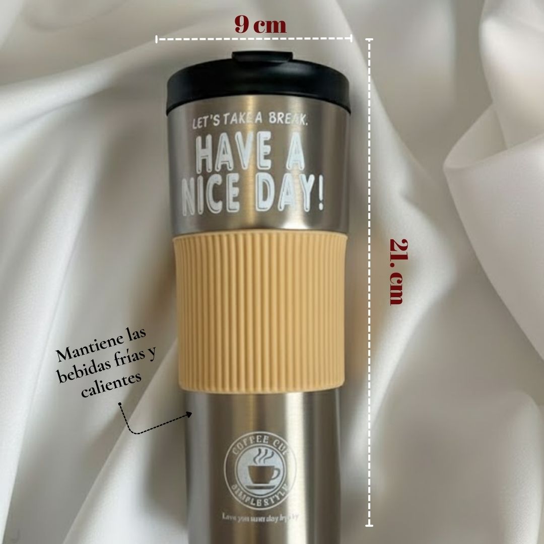 Su sistema térmico conserva la temperatura por más tiempo, ideal para café, agua, jugos o bebidas energéticas.